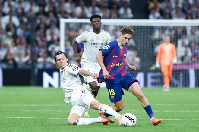 在皇马凶猛的逼抢下,巴萨踢得非常狼狈,佩德里将维尼修斯的球衣扯成了披风。不过,巴萨还是抓住了皇马为数不多的一次失误,由费尔明将比分扳平。